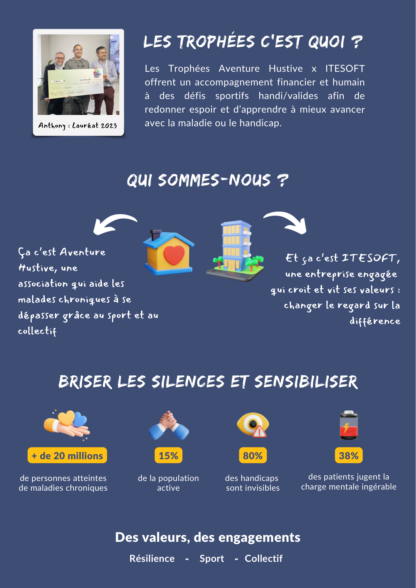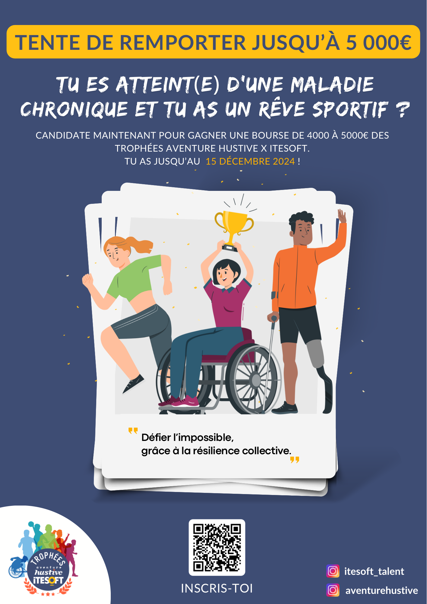 Après le succès de l’édition 2024, l’Association Aventure Hustive, avec le soutien de l’entreprise ITESOFT, lance la deuxième édition des Trophées : un appel à projet activité physique adaptée/sportif «handi-valide» pour les personnes atteintes de maladies chroniques et/ou en situation de handicap.