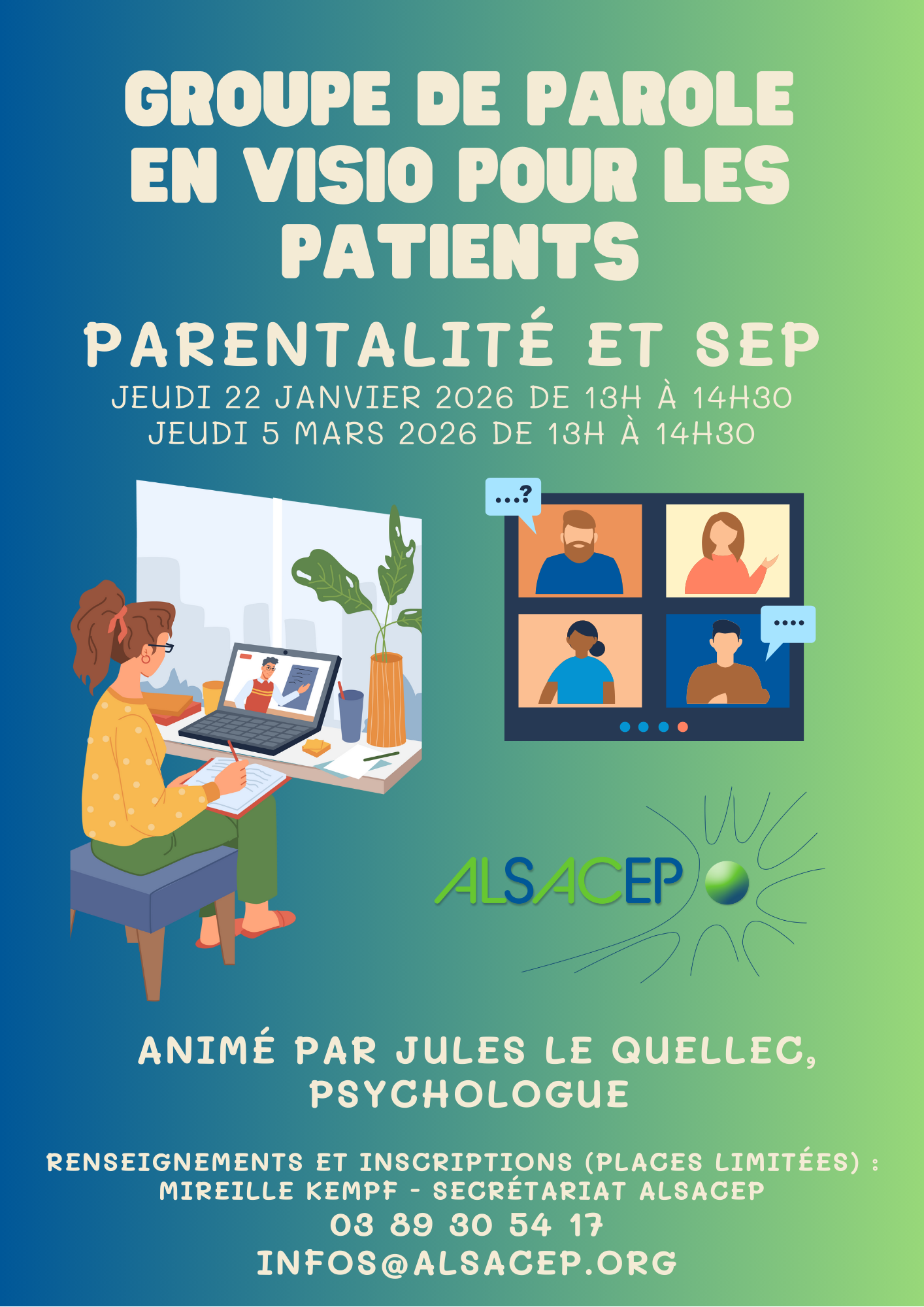 Groupe de parole en visio avec Jules LE QUELLEC : Parentalité et SEP