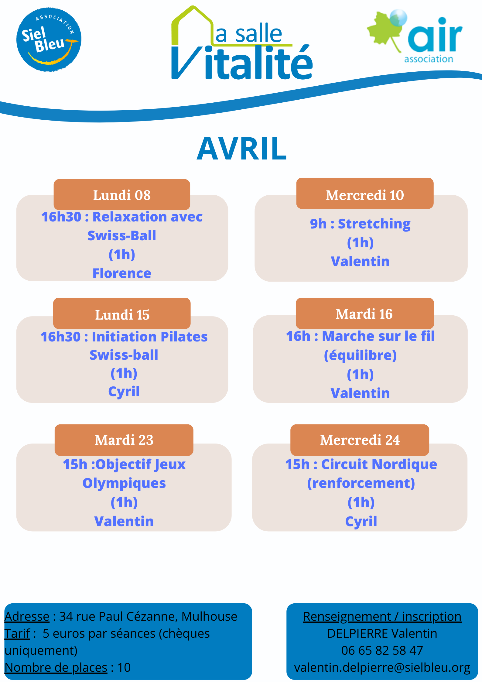 LES SÉANCES D'AVRIL POUR LES ACTIVITÉS PHYSIQUES ADAPTÉES DE "MA SALLE VITALITE"