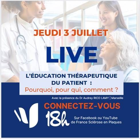 Live France Sclérose en Plaques le jeudi 3 juillet à 18h ! L'éducation thérapeutique du patient (ETP)