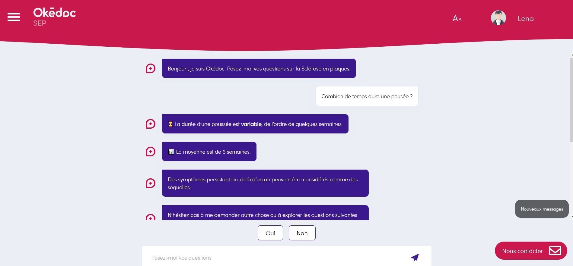 OKÉDOC n'est pas un service médical d'urgence et ne fait pas de diagnostic médical, c'est un assistant virtuel d'éducation thérapeutique.