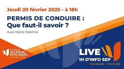 France Sclérose en plaques vous donne RDV pour son prochain Live le jeudi 20 février à 18h qui abordera le sujet du « Permis de conduire : que faut-il savoir ?».